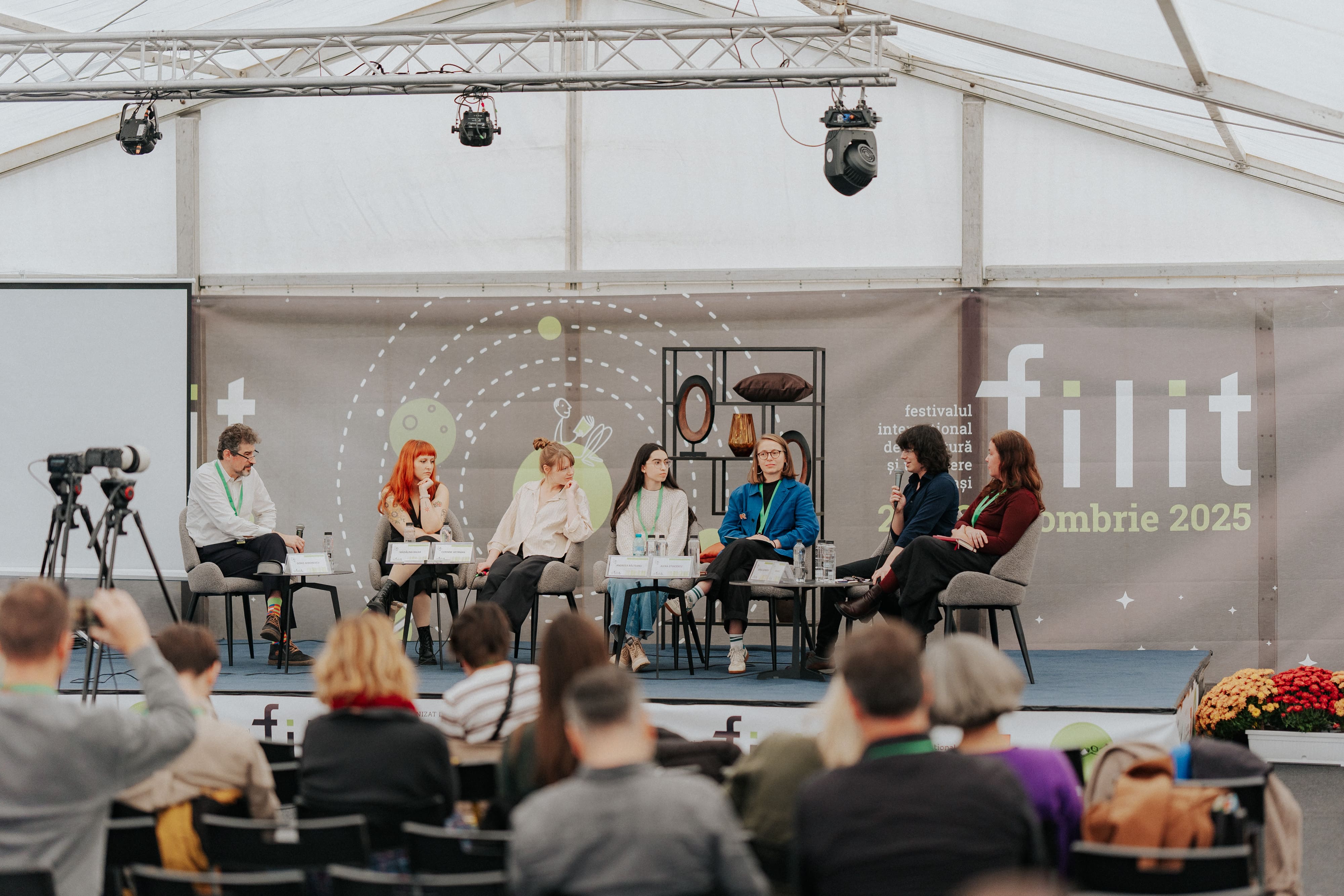 Friday, October 24. The meetings between writers and students continue. In addition to these, at the FILIT tent in Unirii Square, many workshops, debates, and sessions are taking place, in which the young people participate with great enthusiasm. That evening, there is a beloved event for poetry lovers: The White Night of Poetry. The opening features a performance of contemporary Ukrainian poetry. It’s an impressive artistic moment! Until 4:00 AM, numerous talented poets take the stage, enchanting the audience with their works.